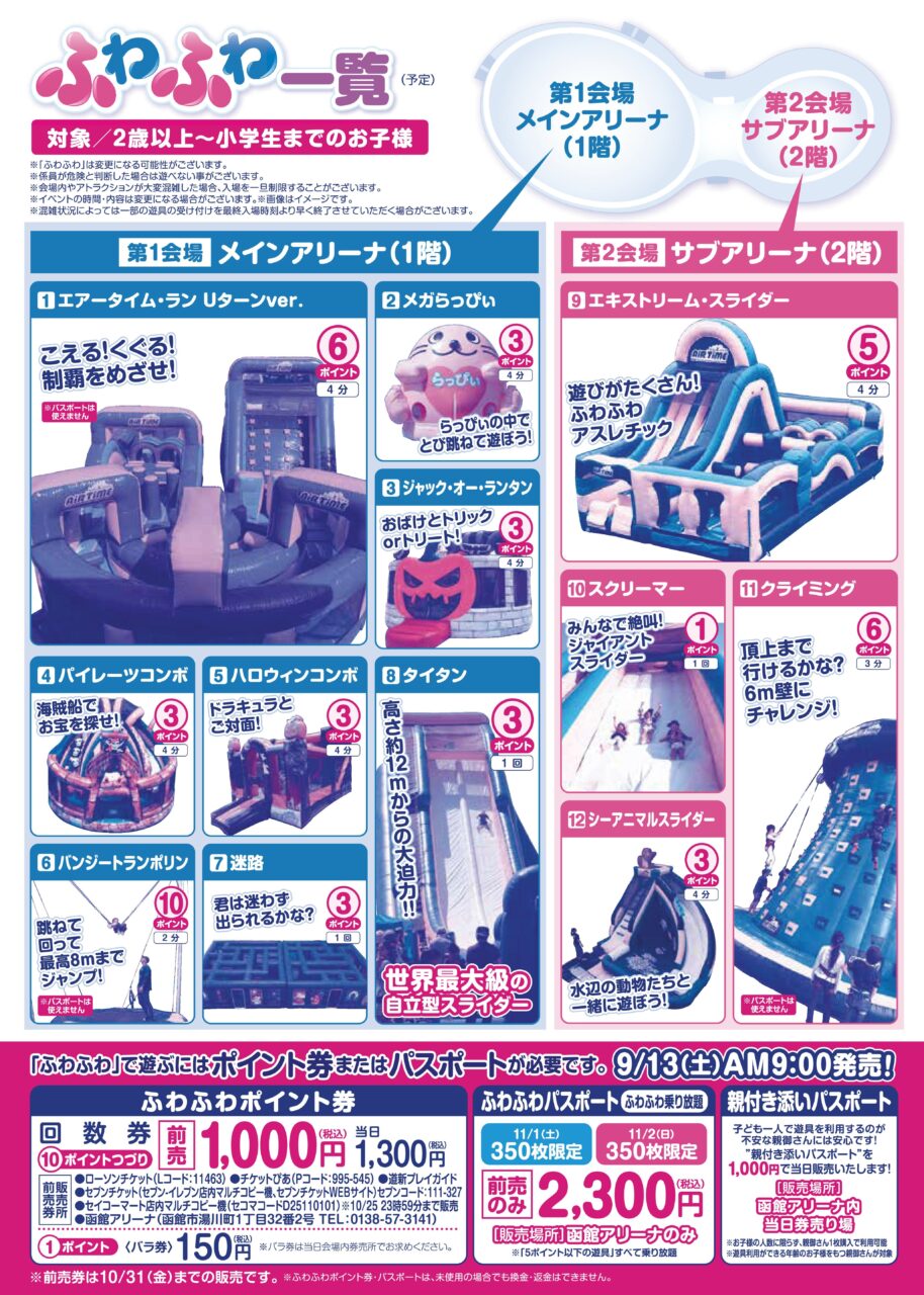 入場料 無料 (ふわふわ遊具を利用する場合はポイント券が必要)